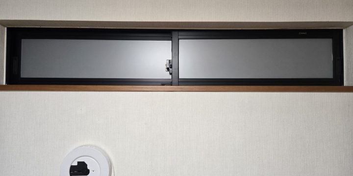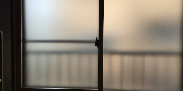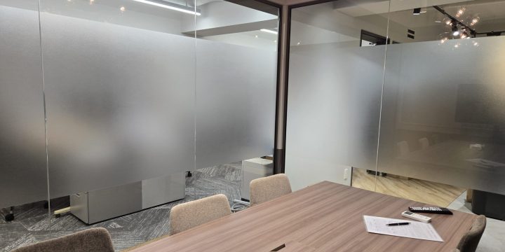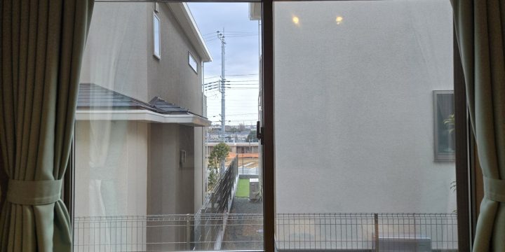 ブラウン系のミラーフィルムで、日中は外から室内が見えにくくなっています。