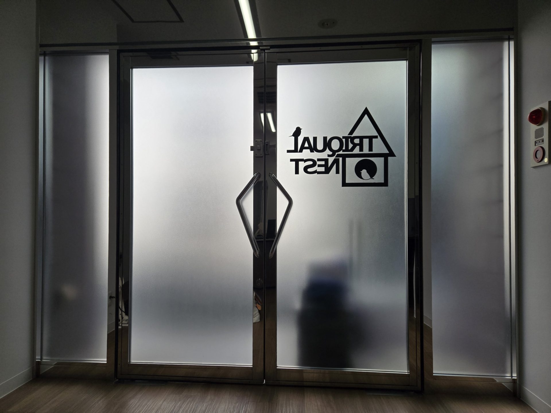 中央区のオフィスで乳白色の目隠しフィルムを貼りました!