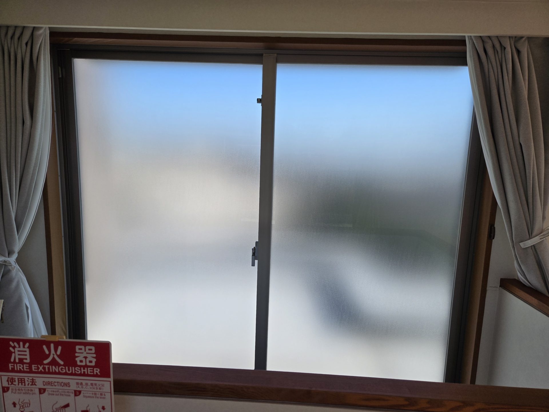 新宿区のマンションで乳白色の目隠しフィルムの貼り替え施工を行いました!