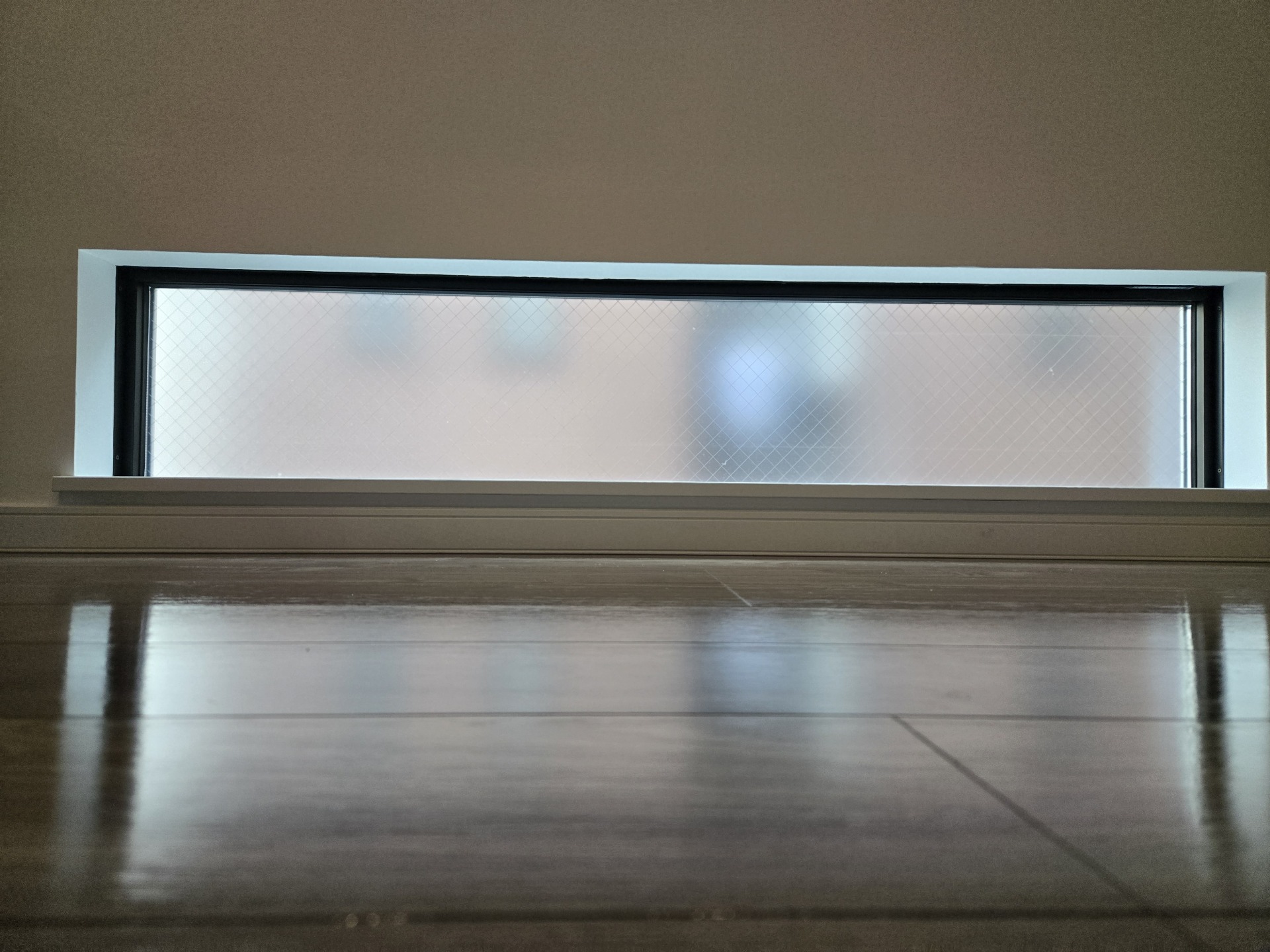 江戸川区の戸建ての横長窓ガラスに乳白色の目隠しフィルムを貼りました!