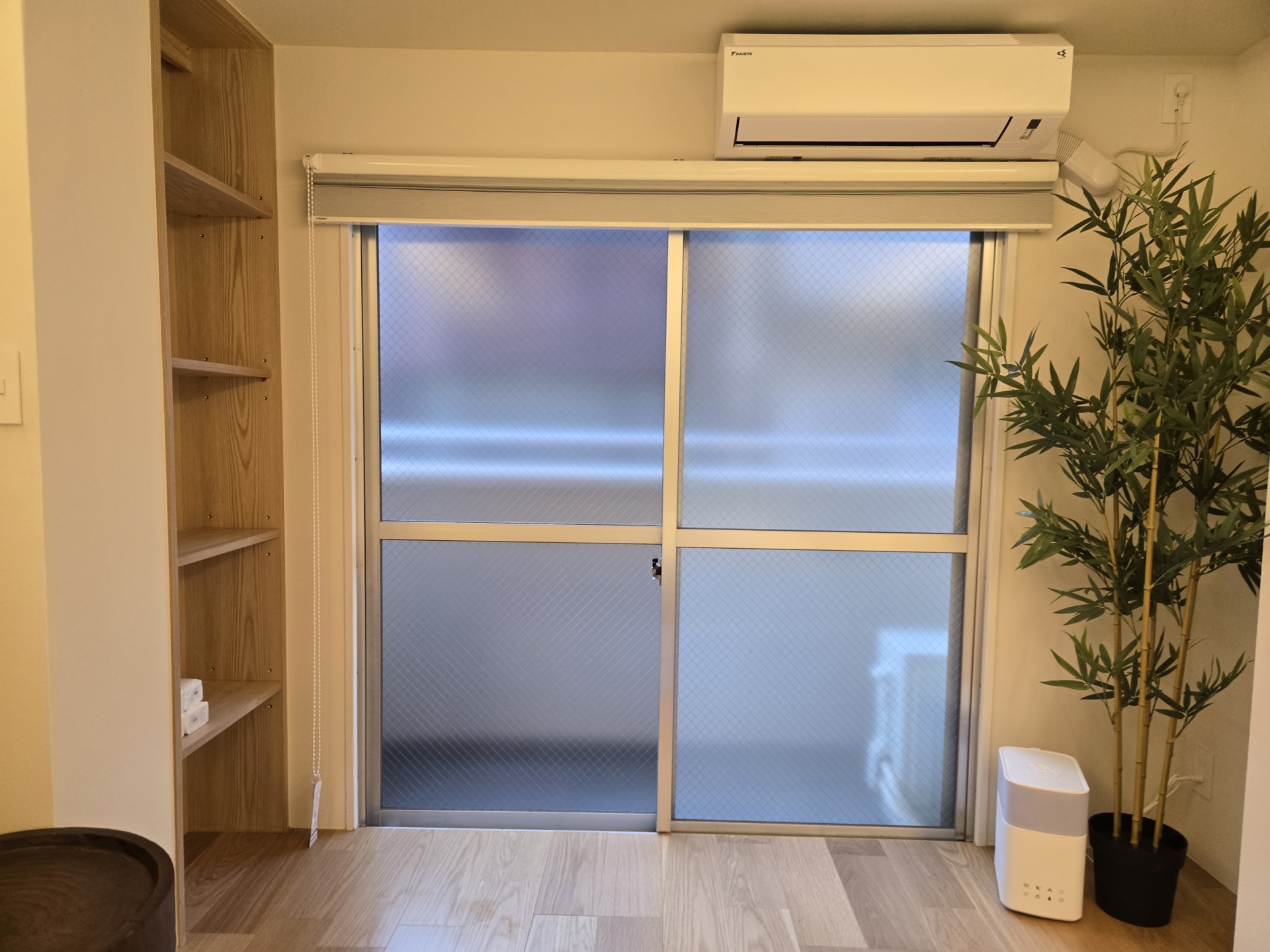 窓ガラスの雰囲気を活かして日中、夜間の目隠しができます。