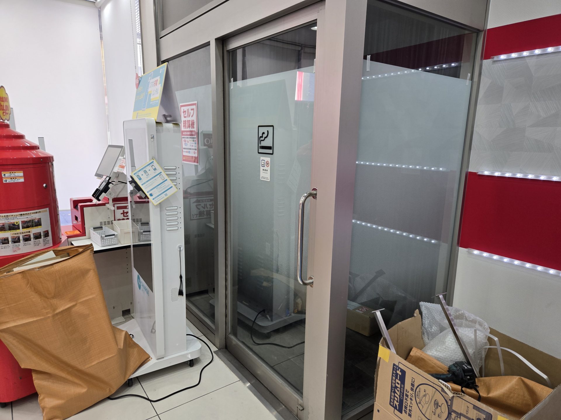 厚木市のカラオケ店の喫煙ブースでグラデーションフィルムの貼り替え施工を行いました。