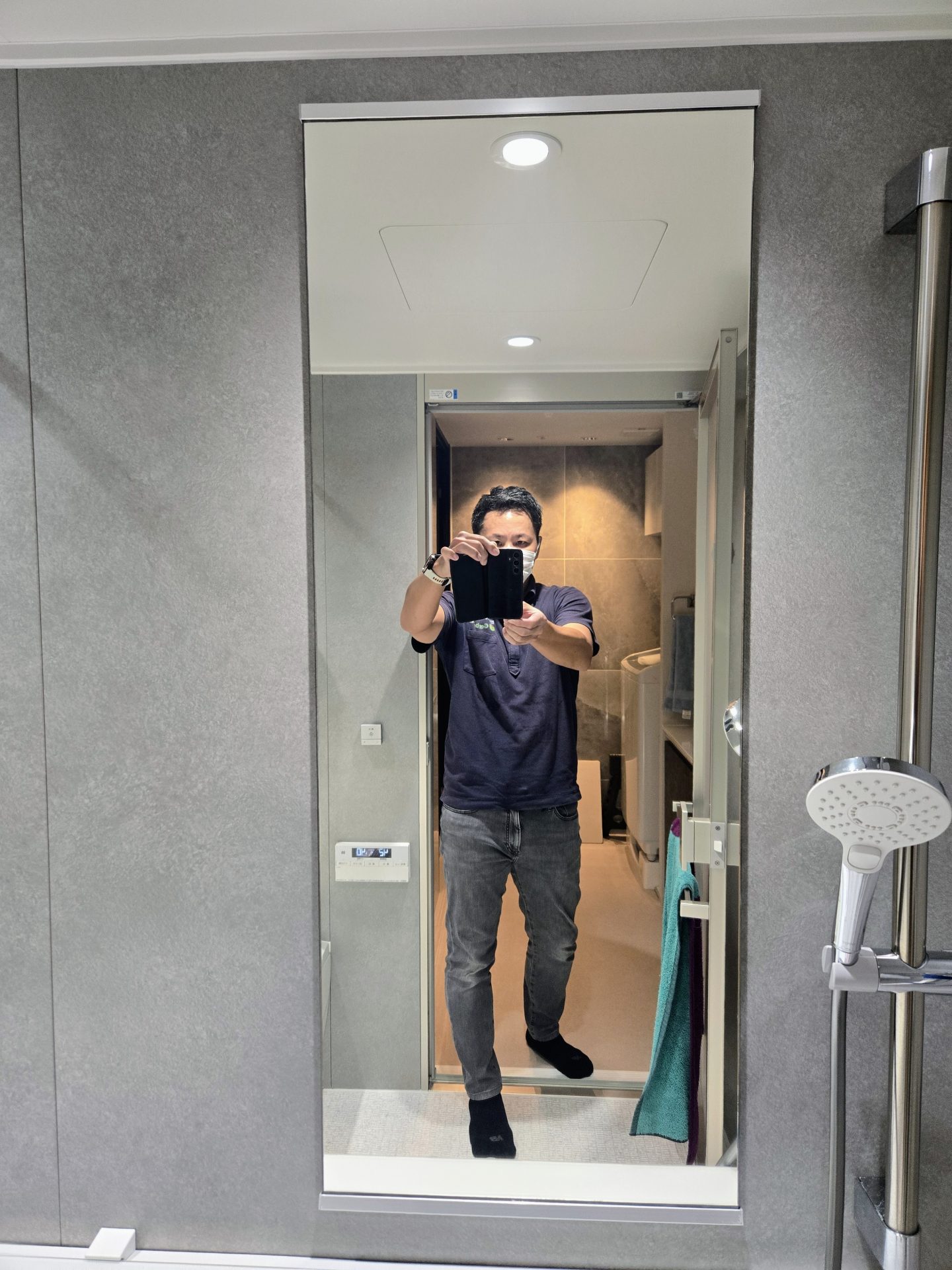 新宿区のマンションで浴室の鏡に曇り止めフィルムを貼りました!