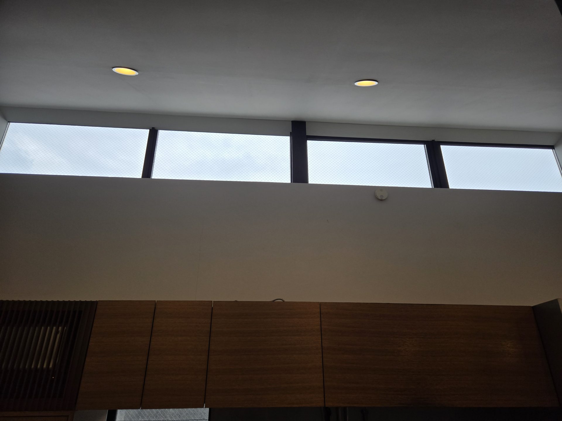 世田谷区の戸建ての高所の窓ガラスに透明UVカット遮熱フィルムを貼りました!