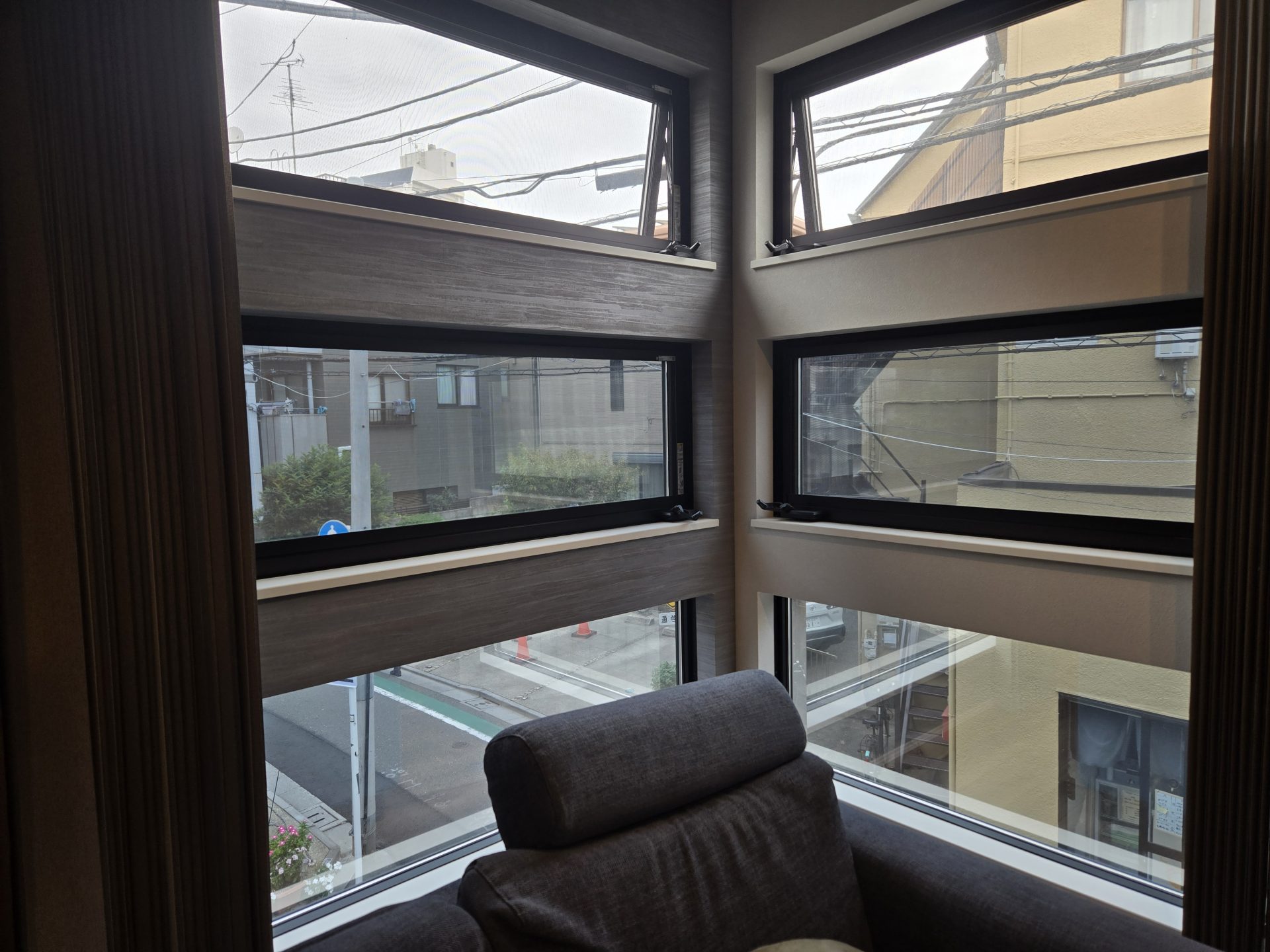 荒川区の戸建ての横長窓ガラスにミラーフィルムを貼りました!
