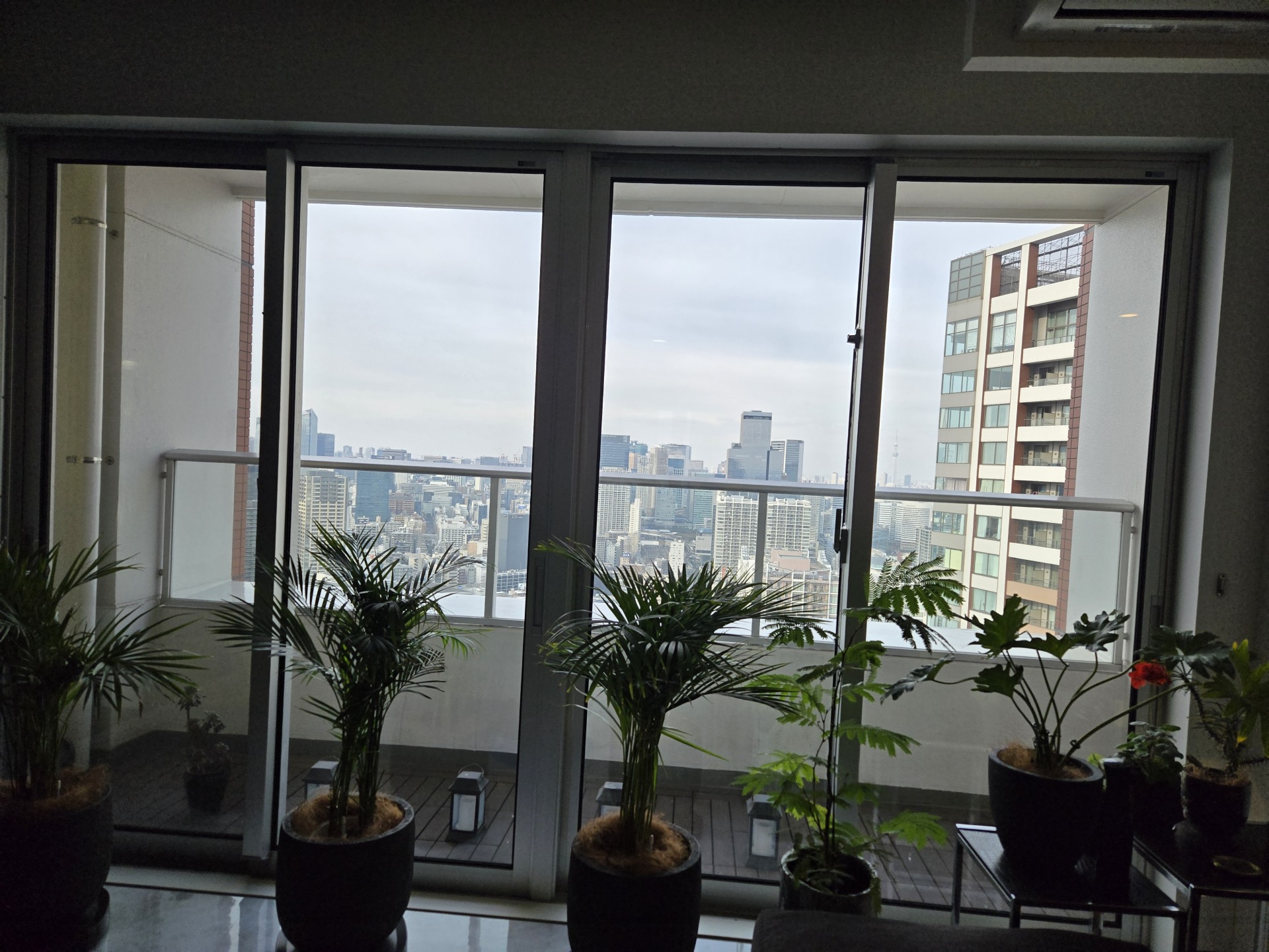 遮熱フィルムを貼ると可視光線の反射率が上がって夜景が見えにくくなることがあります。